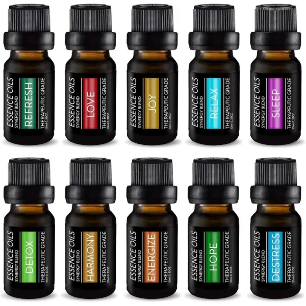 Pure Daily Care Aromatherapy Top 10 Essential Oil Synergy Blend Set – Therapeutic Grade Synergy Oil Blends – Uplift Mind, Body and Spirit – 10 x 10 Ml Blends – No Fillers & No Additives(Single Ingredient Oils)